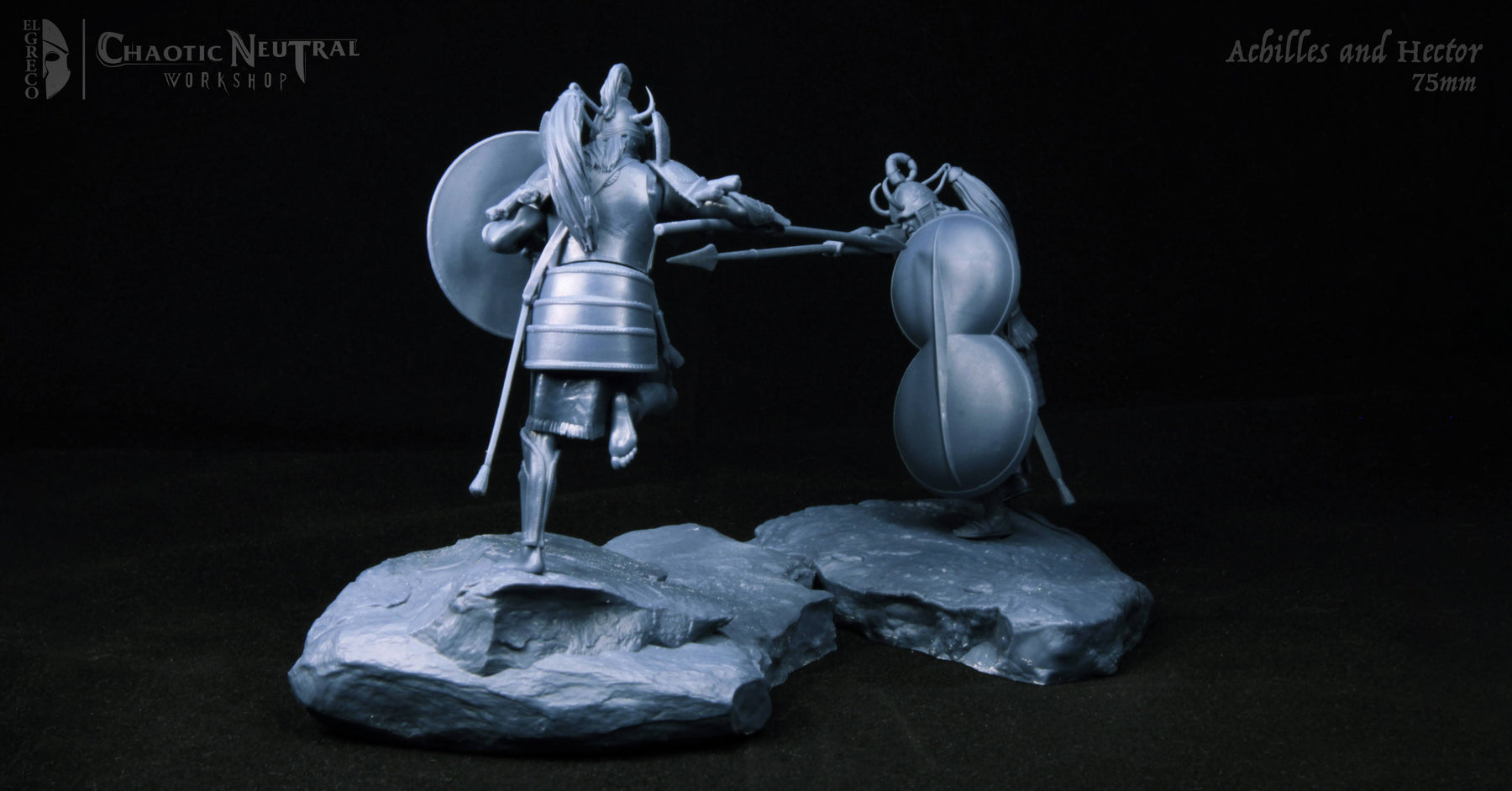 This take on Achilles draws from Mycenaean influences, with bold bronze armor, a detailed round shield, and a dynamic forward-driving pose. The sculpt aims for a blend of mythic energy and historical flavor, capturing Achilles mid-charge with spear and shield ready.